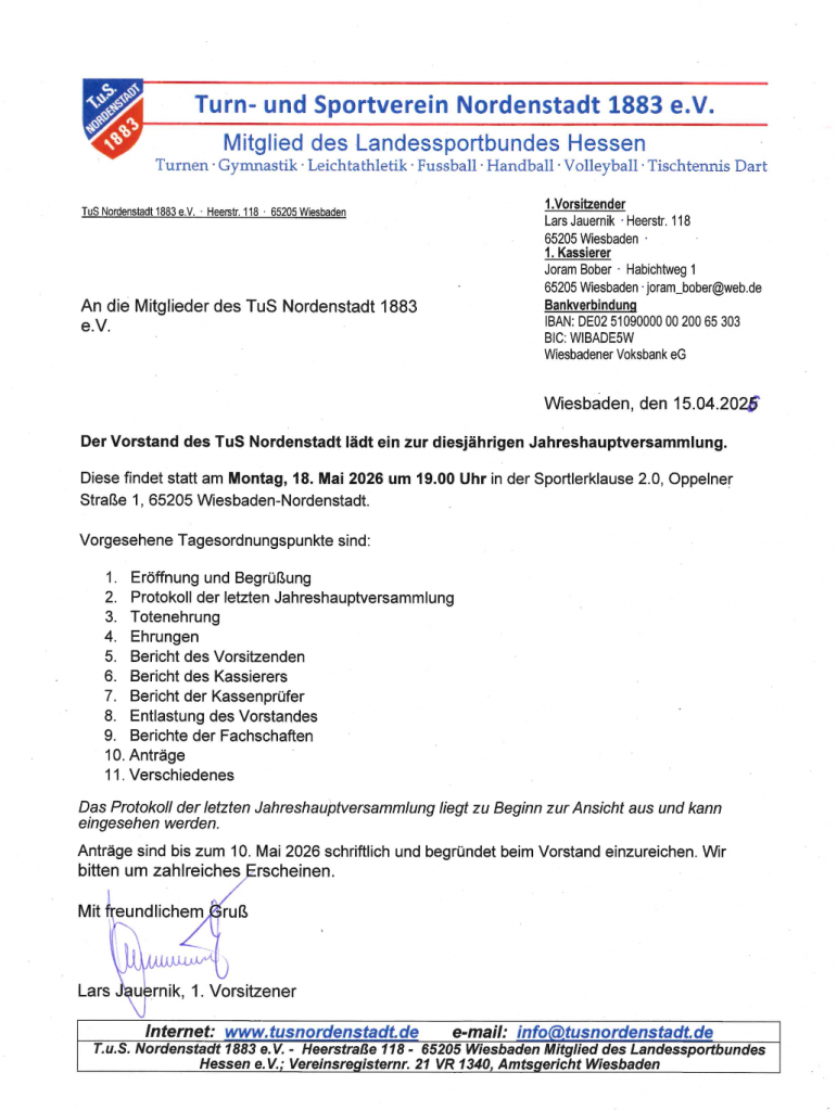 Jahreshauptversammlung am 18.05.2026