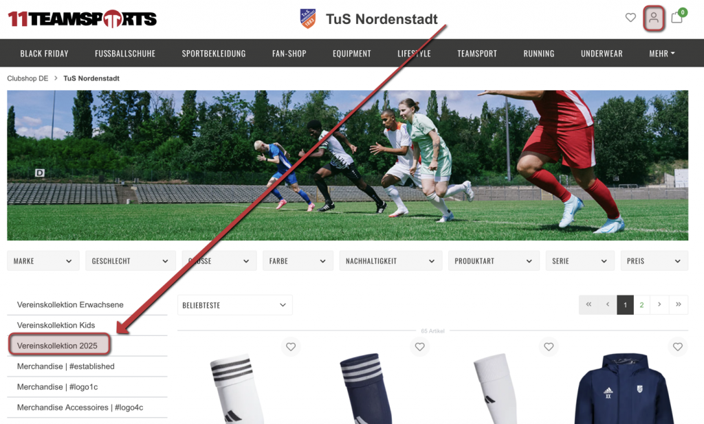 Mit dem folgenden Link gelangt ihr auf unsere Shop-Seite bei 11Teamsport. Dort könnt ihr mit den vereinbarten Rabatten die TuS Sportausstattung zum Beispiel inkl. TuS-Wappen und Initialen kaufen. Dazu auf den Menüpunkt VEREINSKOLLEKTION 2025 klicken.
